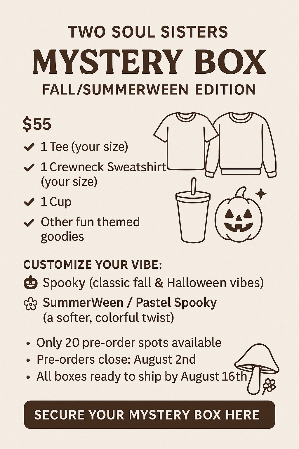 LIMITED: Mystery Box: Fall/Spooky ** Add us a note if you would like a different size crewneck than your tee!