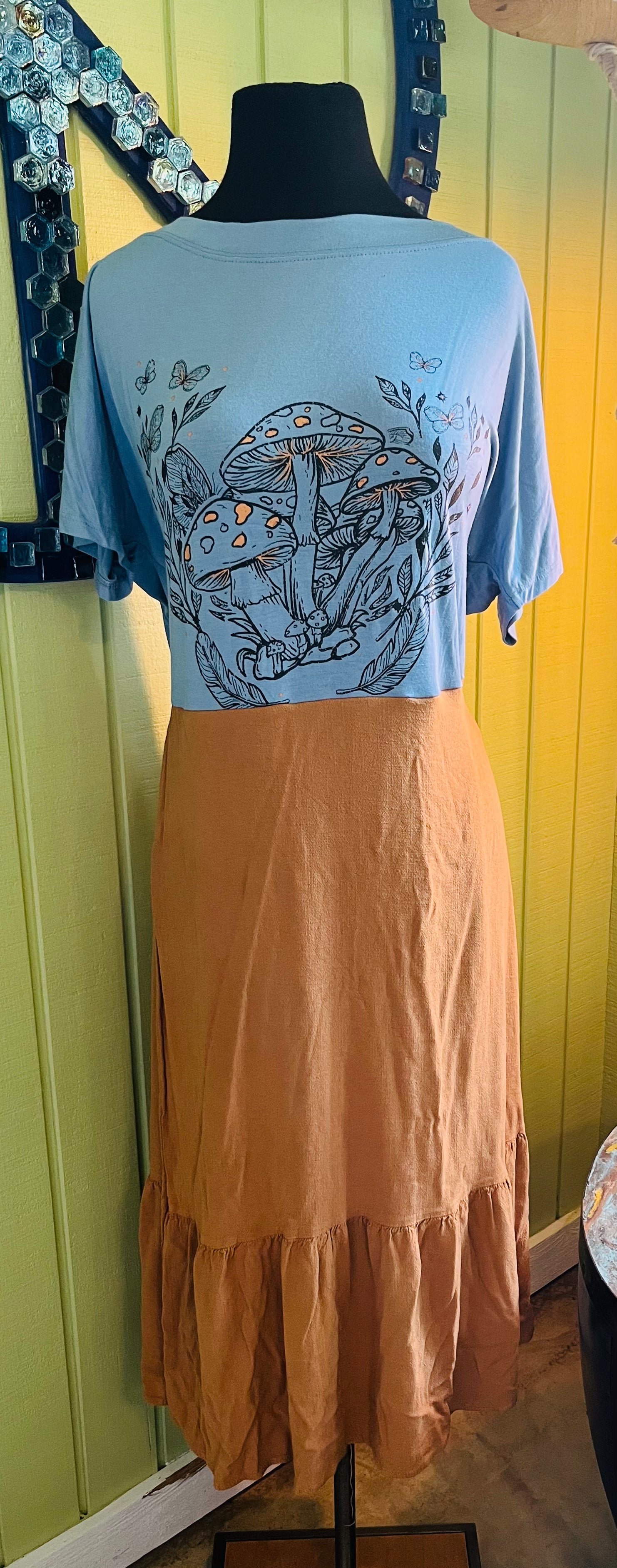 Mushroom dress with wrap skirted bottom upcycle fits large-2x best