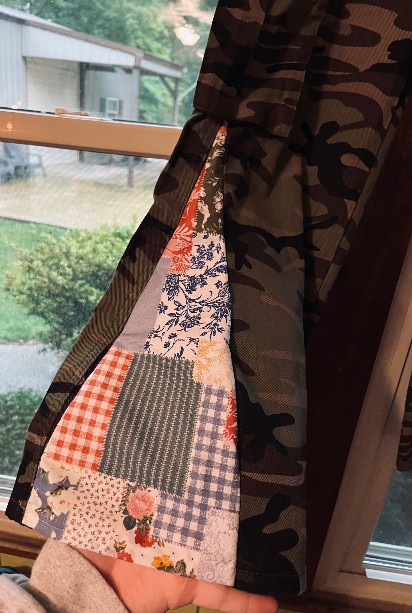 Patchwork Camo Cargo Pants with bell bottom patchwork size 2-4