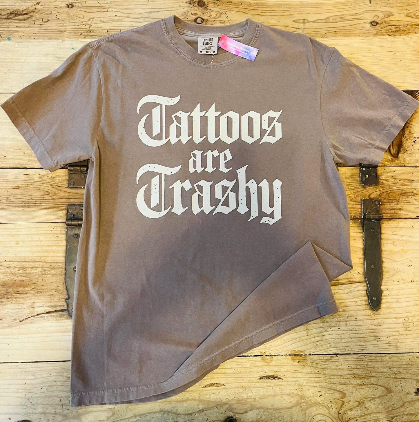 Tattoos are Trashy- Mocha tee/Tan text Comfort Colors